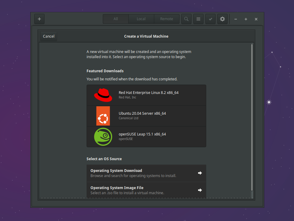 Fedora ships the latest versions of KVM, QEMU, libvirt, and Cockpit, making it one of the best distributions for cutting-edge virtualization features. Red Hat's investment in the virtualization stack means Fedora users often get access to new KVM features first. GNOME Boxes also comes pre-installed on Fedora Workstation.