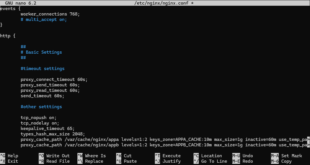 send_timeout 60s;3. Press Ctrl + O, followed by Ctrl + X to save your changes and exit.