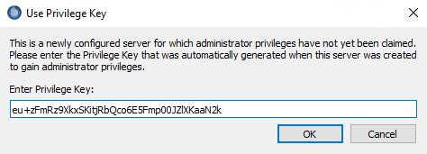 - Next, paste the privilege key from your server panel and press "OK". You can now start inviting people to your server with full permissions to manage them