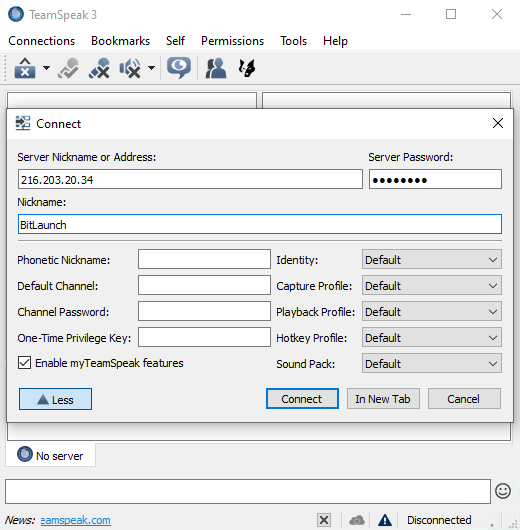 The final part is to start your TeamSpeak client and enter your admin details to ensure you have control over your server: