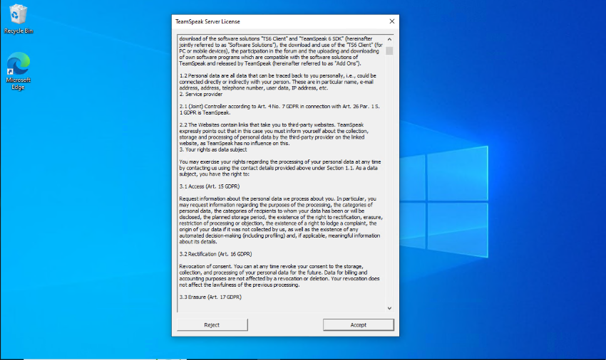 - Read the TeamSpeak 6 server license and press "Accept".