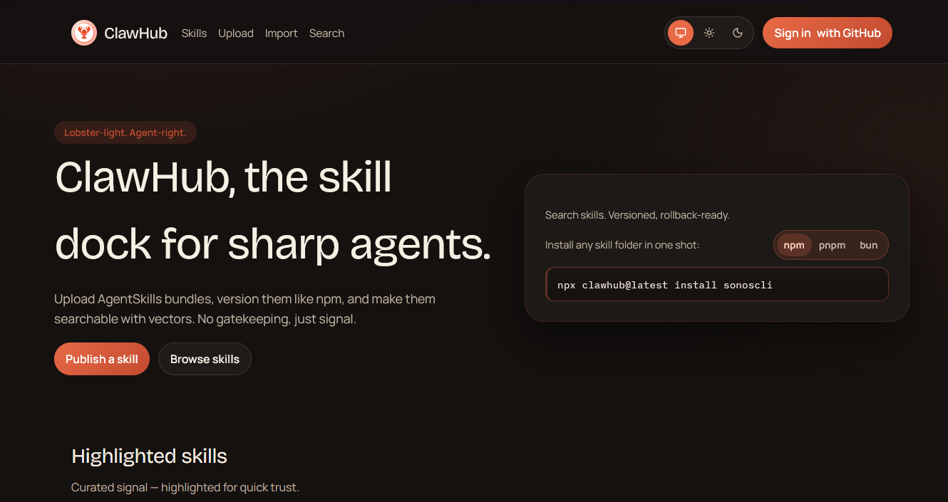 Alternatively, you can search for and install skills with the ClawHub CLI: