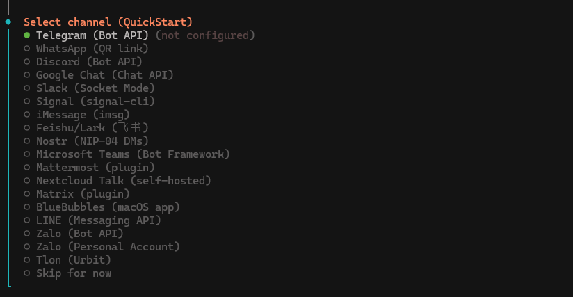 8. Select your channel (messaging/interaction service) and follow the instructions on-screen. We'll choose Telegram in our example.