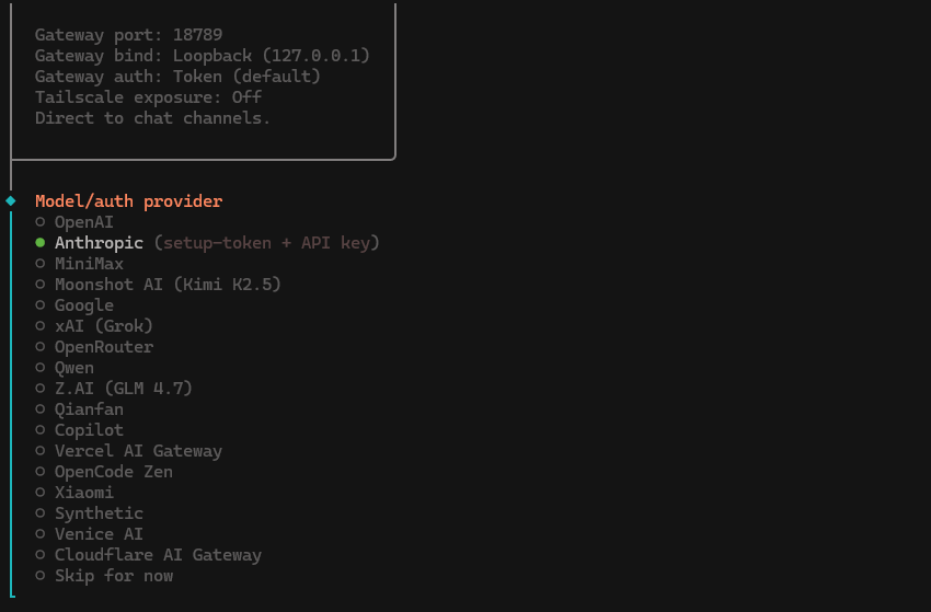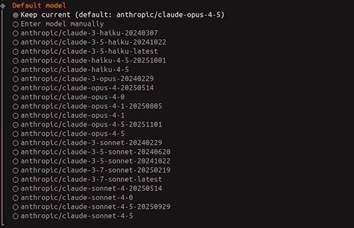 7. Choose the model from your providers that want OpenClaw to default to. fKeep in mind that you may not want to choose the most powerful model if you don't have deep pockets.