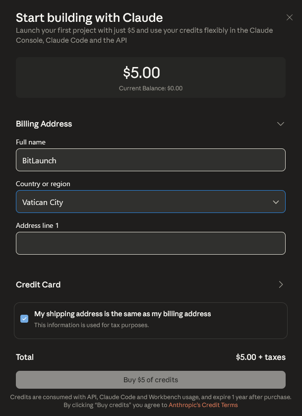 6. Press "Get API Key" on your LLM of choice, fund it, then copy the key. Paste it into the terminal when prompted.